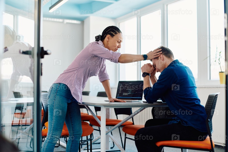 Разъяренный директор стартапа ругает своего сотрудника за ошибки и просчеты в бизнесе