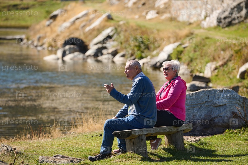 Пожилая пара находит утешение и радость, отдыхая на скамейке в парке и ведя душевную беседу после восстанавливающей силы прогулки, что является свидетельством прочного товарищества и безмятежной связи, сопровождающей золотые годы