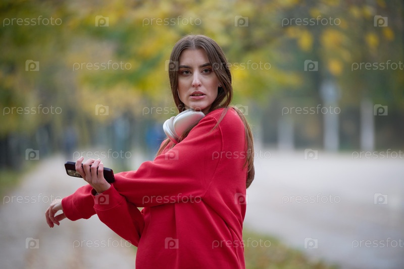 Спортивная молодая женщина делает вдох и расслабляется после пробежки и растяжки. Тренировка женщины и упражнения для тренировки на улице