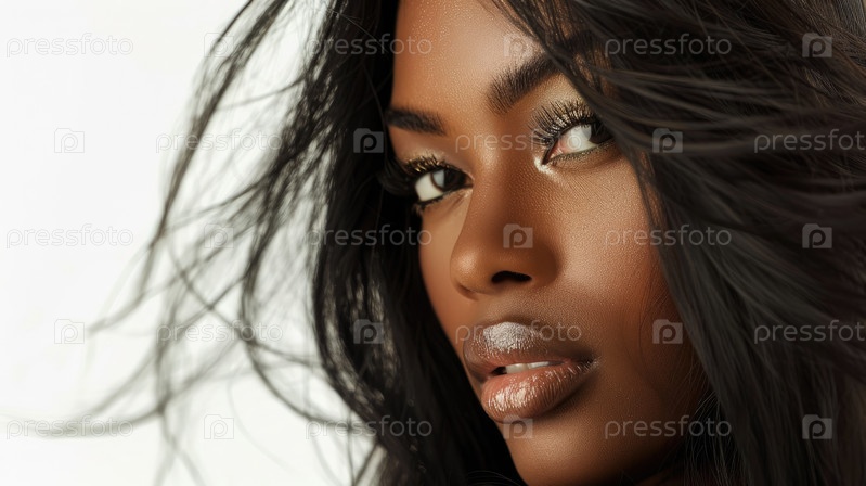 Шелковистые темные волосы в элегантном движении. Студийный портрет
