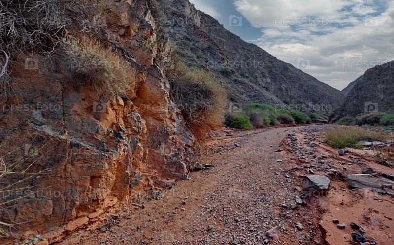 Северный Кыргызстан. Живописные извилистые тропы каньонов Кок-Мойнок с красно-коричневыми скалами вдоль реки Чу
