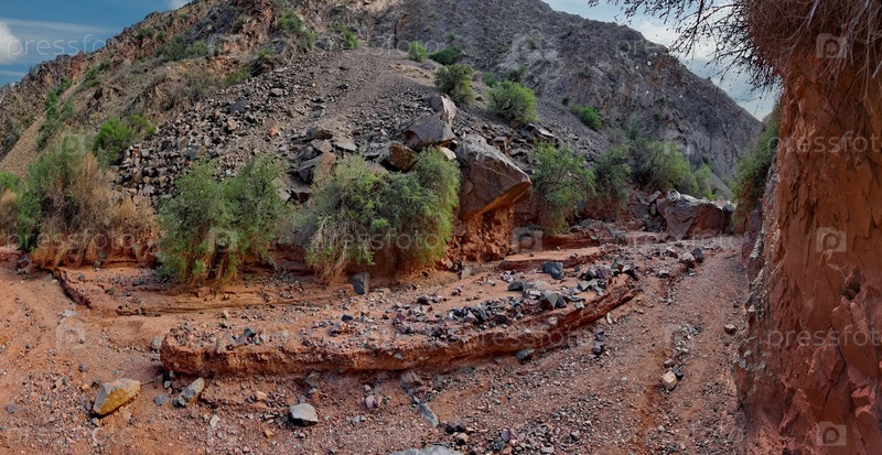 Северный Кыргызстан. Живописные извилистые тропы каньонов Кок-Мойнок с красно-коричневыми скалами вдоль реки Чу