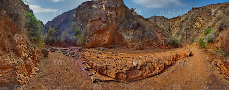 Северный Кыргызстан. Живописные извилистые тропы каньонов Кок-Мойнок с красно-коричневыми скалами вдоль реки Чу