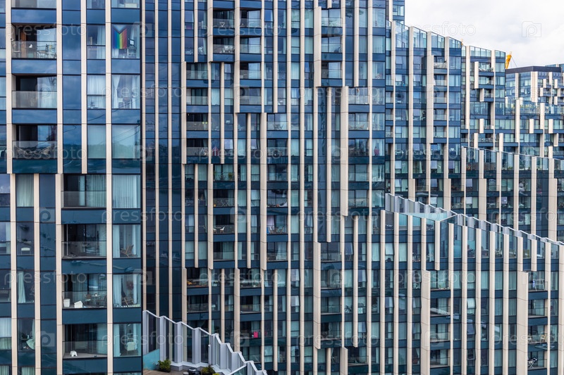 Современный стеклянный фасад высотных зданий в Лондоне. Современный архитектурный дизайн