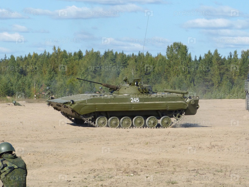 Боевая машина на поле в движении