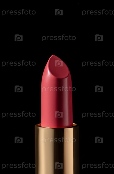 Крупный план красной помады с тенью на черном фоне. Современная концепция макияжа, каталог моды