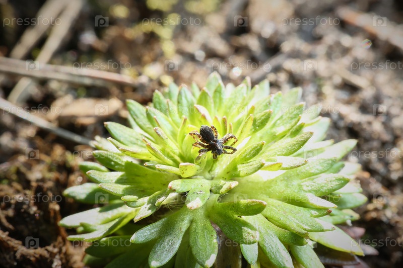 Садовый паук на зеленом колючем сочном цветке