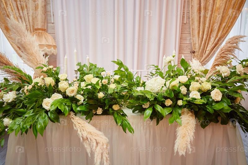 Свадебный стол украшен цветами