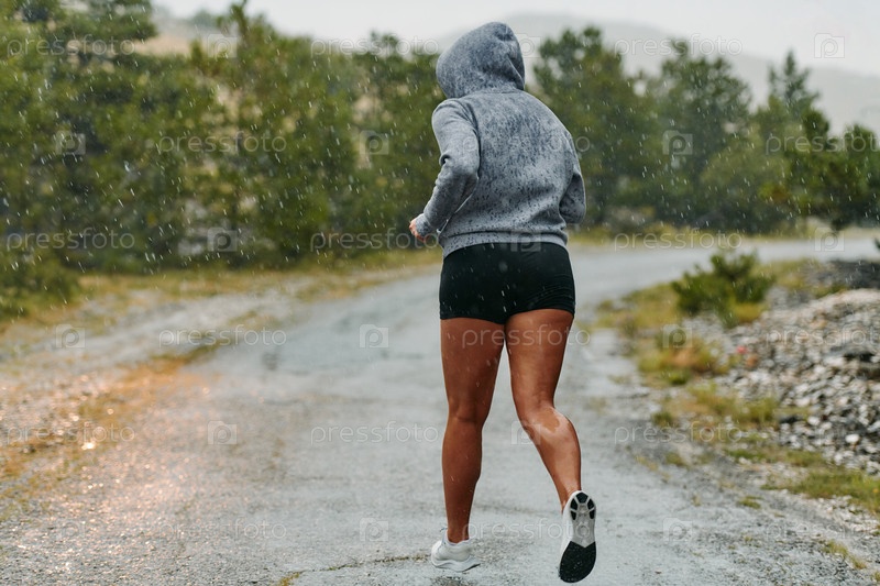Неудержимый: решительный спортсмен тренируется под дождем в погоне за славой в марафоне
