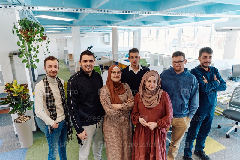 Портрет успешного творческого бизнесмена и бизнесвумен, смотрящих в камеру и улыбающихся. Разные деловые люди стоят вместе на стартапе