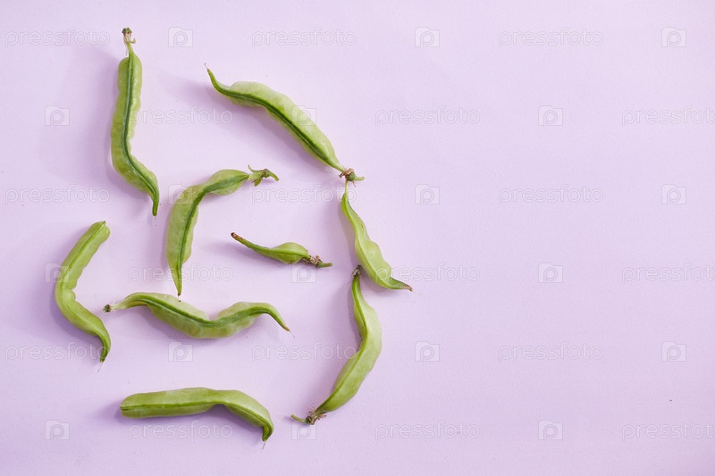 Уродливый органический горох домашнего выращивания на розовом фоне. Модная уродливая еда. Деформированные продукты, концепция пищевых отходов. Странные смешные несовершенные фрукты. Вид сверху, пространство для копирования