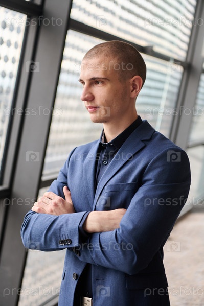 Портрет молодого бизнесмена со скрещенными руками на его фабрике