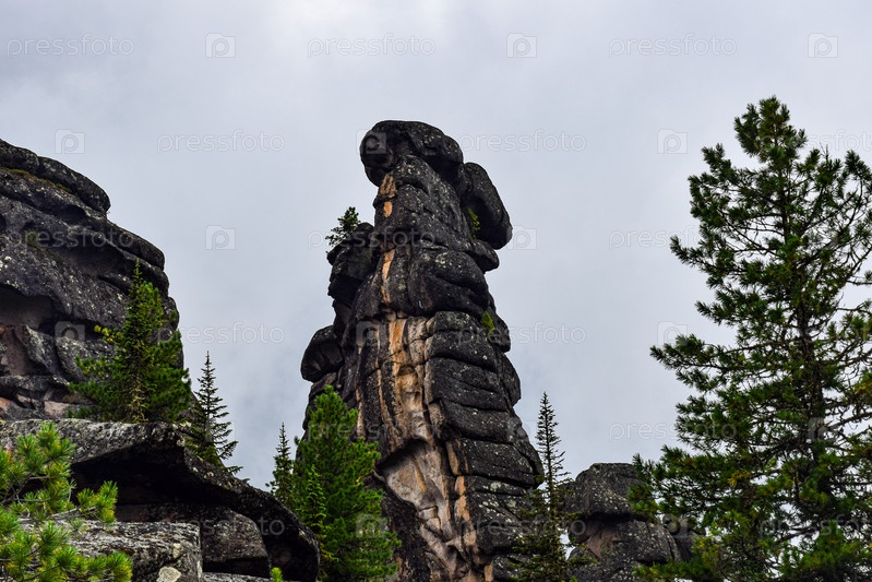 Горный пейзаж, Ергаки, лето, мегалиты, горная тайга, каменный город, небо, тучи
