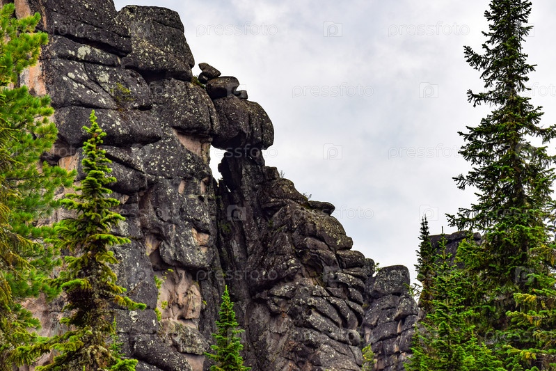 Горный пейзаж, Ергаки, лето, мегалиты, горная тайга, каменный город, небо, тучи
