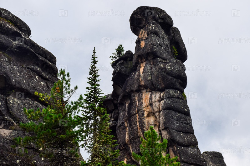 Горный пейзаж, Ергаки, лето, мегалиты, горная тайга, каменный город, небо, тучи