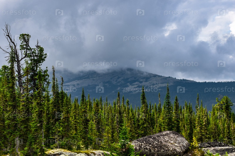 Горный пейзаж, Ергаки, лето, мегалиты, горная тайга, каменный город, небо, тучи