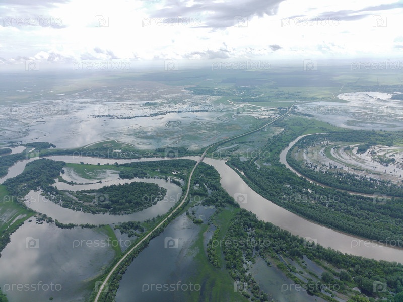 Разлив реки Чарыш и озеро Хвощевое, затопление полей и лугов весной