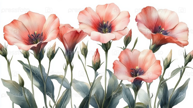 Красный лизиантус на белом фоне в акварельном стиле
