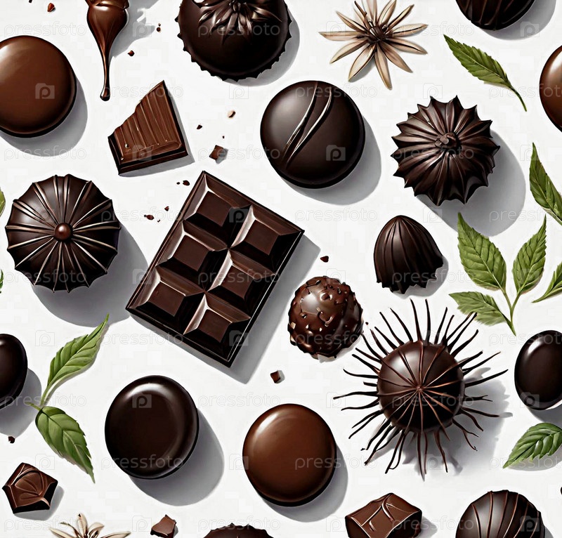 Шоколадные конфеты на белом фоне ИИ