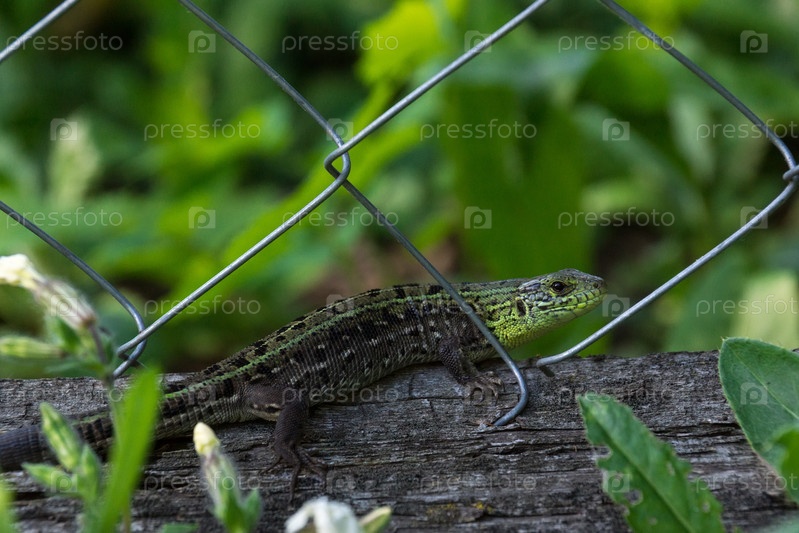 Зеленая ящерица на бревне