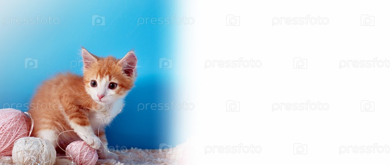 Баннер с рыжим котенком. Белый фон с местом для копирования. рекламный щит для ветеринарной клиники или зоомагазина