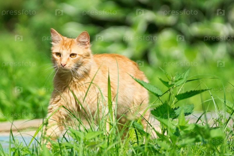 Рыжий кот на траве