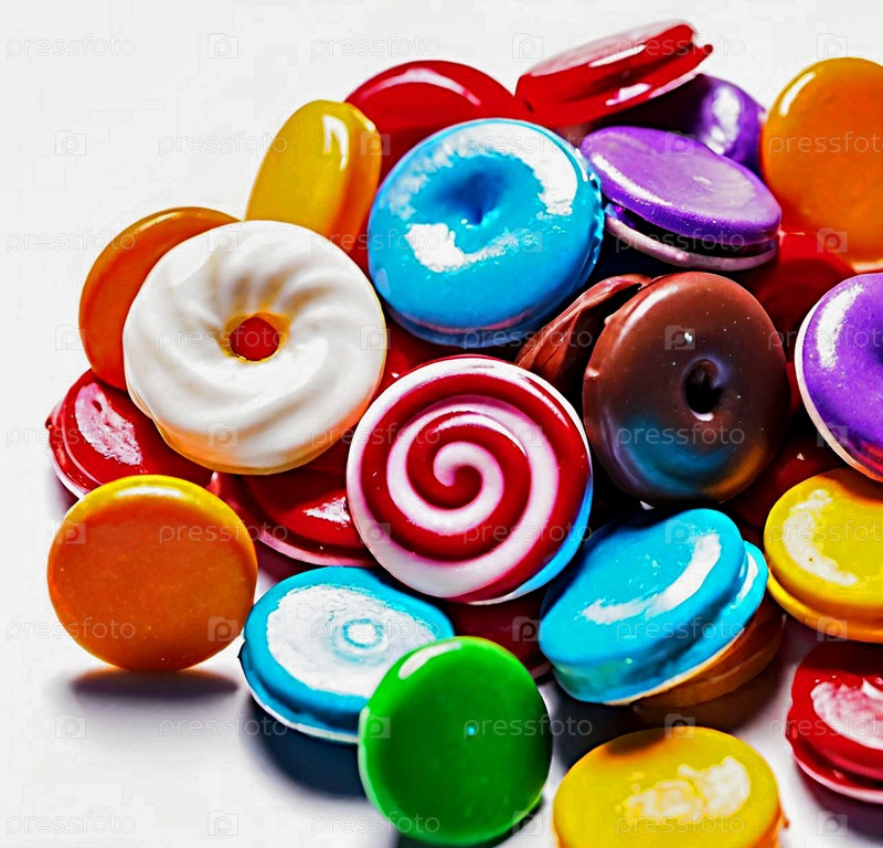 Карамель, драже, леденцы на белом фоне. ИИ