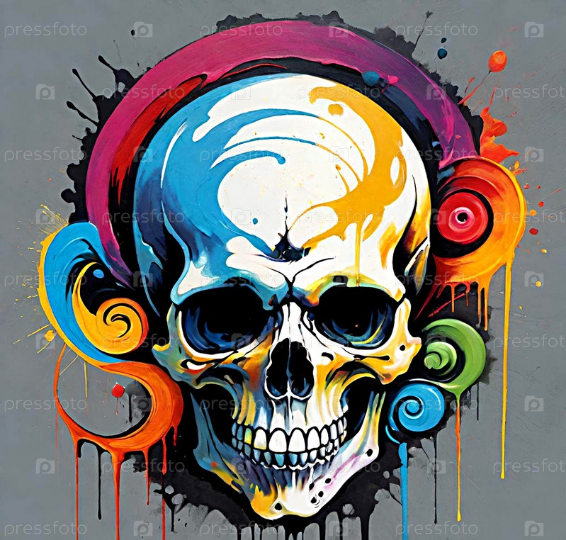 Стилизованный череп граффити ИИ