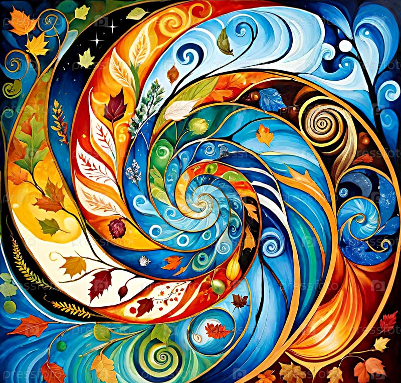 Спираль времени. четыре времени года. зима, весна, лето, осень. ИИ