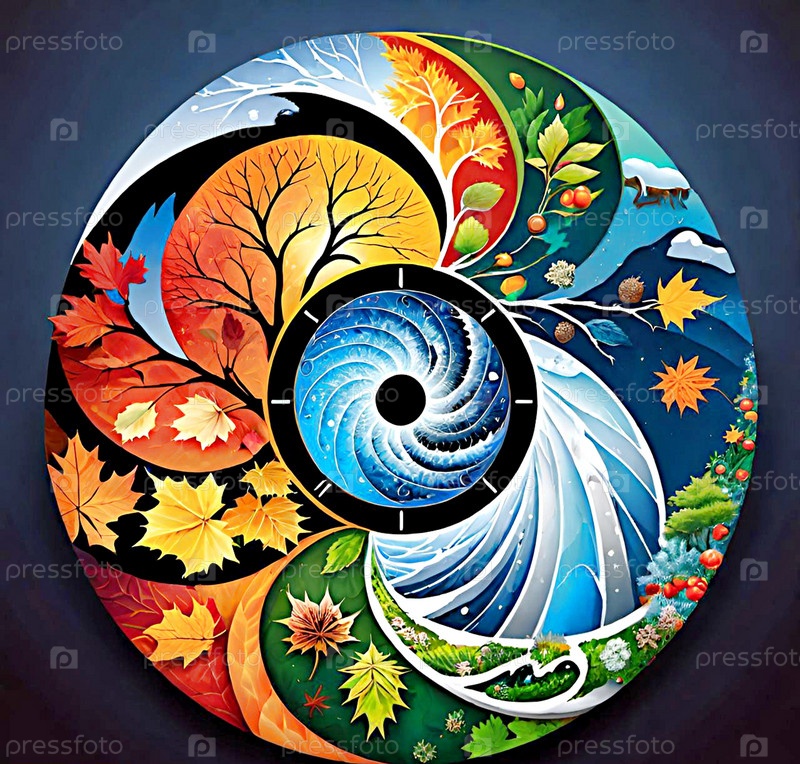 Спираль времени. четыре времени года. зима, весна, лето, осень. ИИ