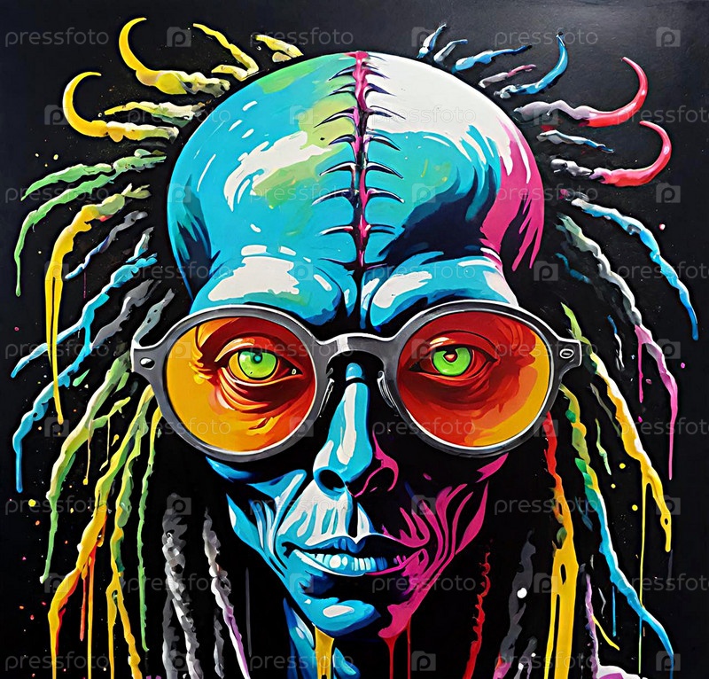 Стилизованный череп с дредами и в защитных очках граффити ИИ