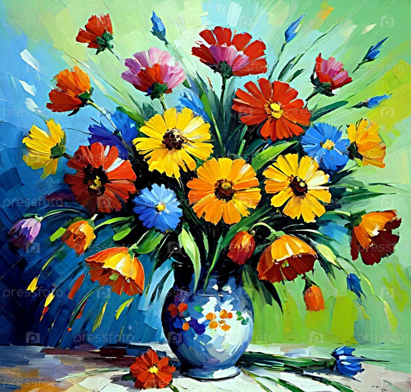 Букет цветов в вазе на столе ИИ