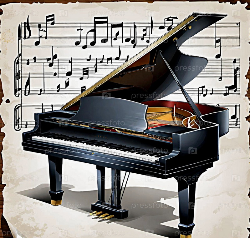 Рояль на фоне старого листка с нотами ИИ
