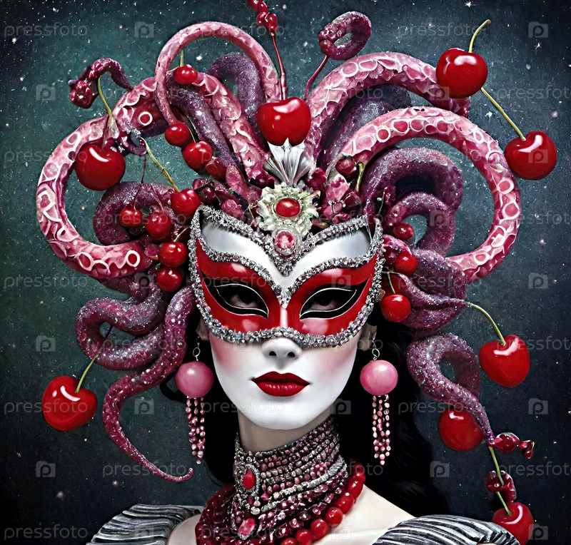 Женское лицо под театральной маской ИИ