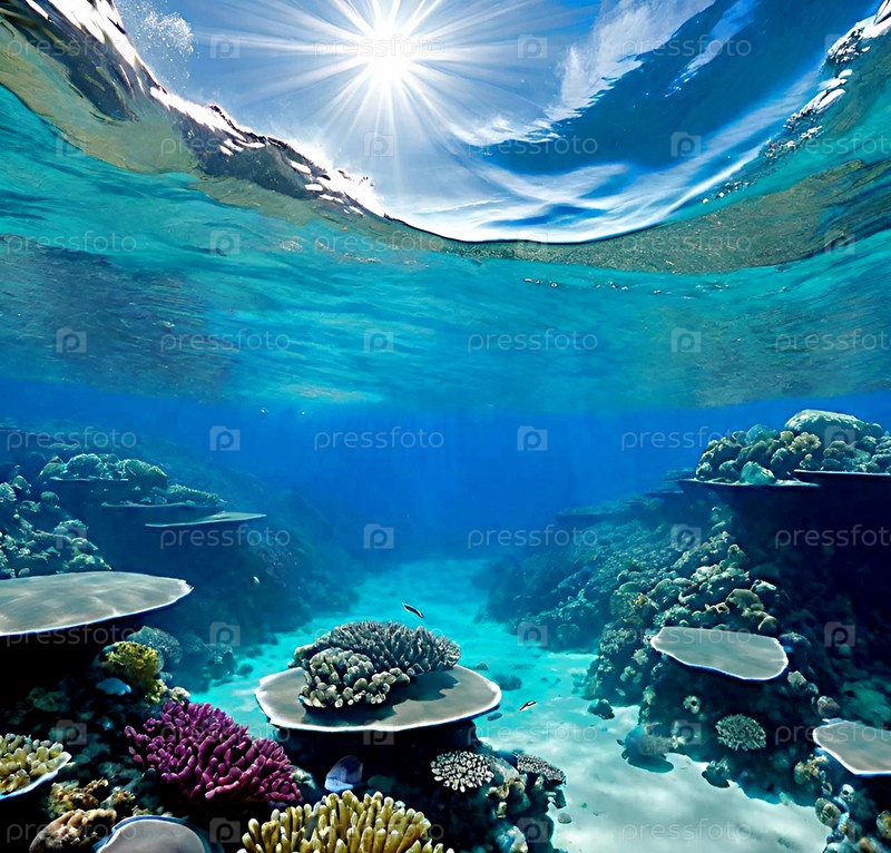 Вид со дна океана, водоема, подводный мир ИИ