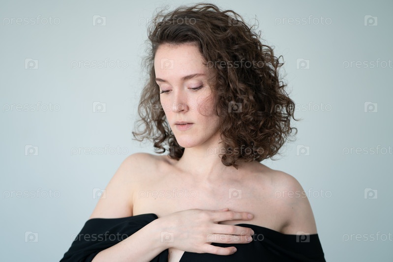 Портрет молодой красивой женщины с вьющимися волосами в студии