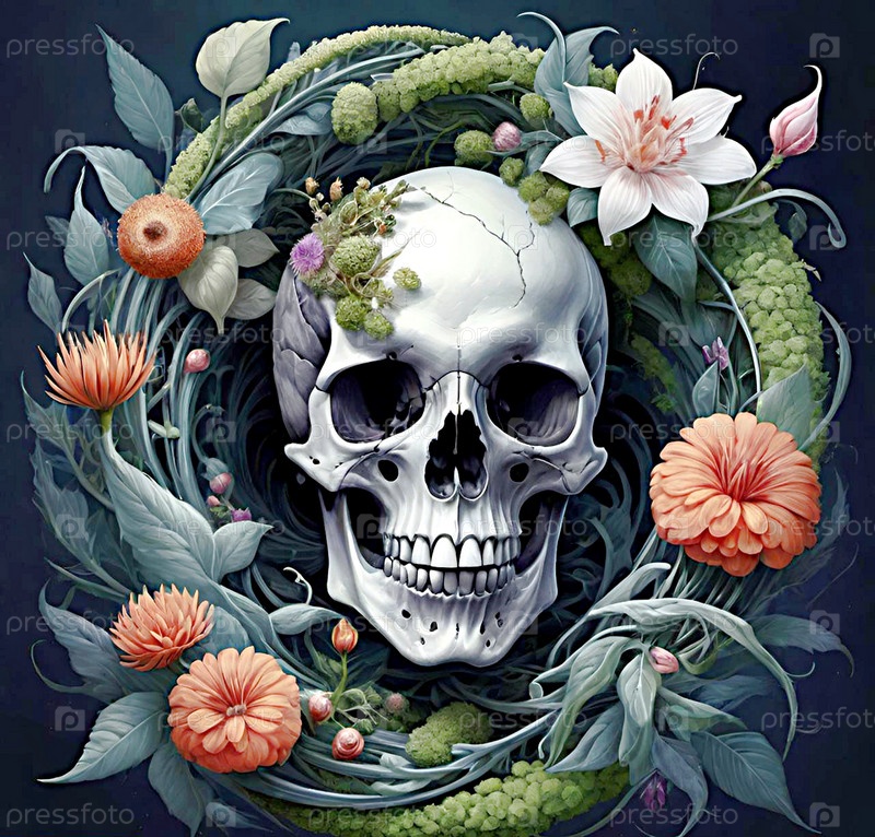 Стилизованный череп с цветами ИИ