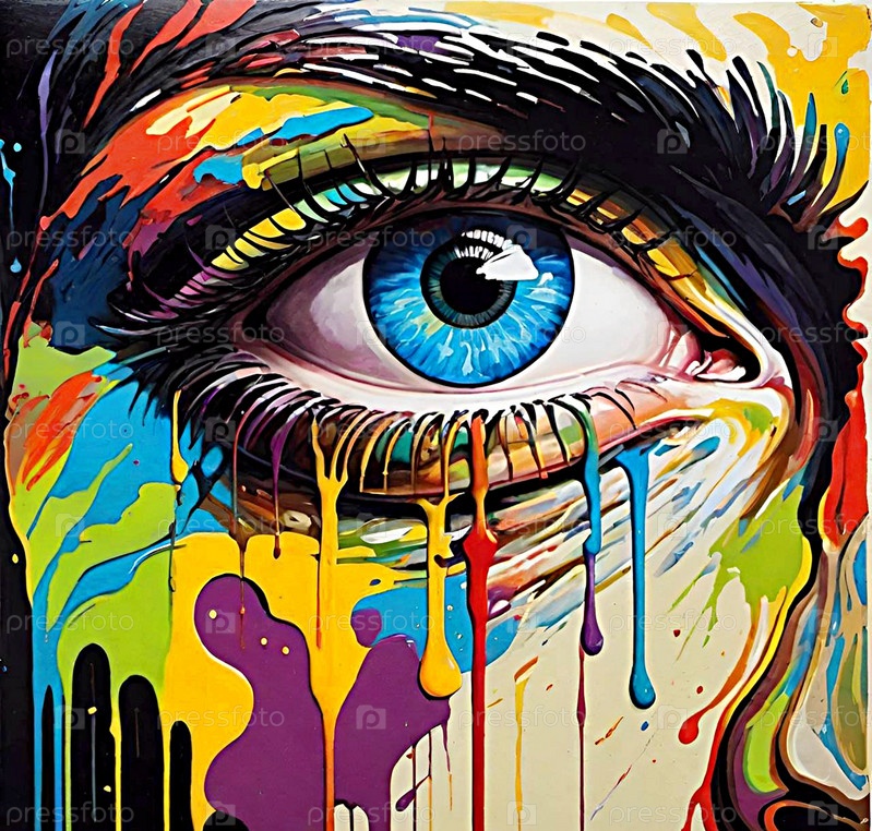Глаз человека крупным планом, граффити ИИ