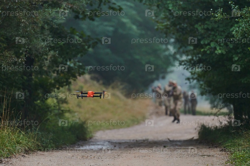 Элитное военное подразделение проводит парад и охраняет лес, используя беспилотники для сканирования местности и разведки, демонстрируя свои передовые навыки и специальную подготовку в операциях с высоким риском