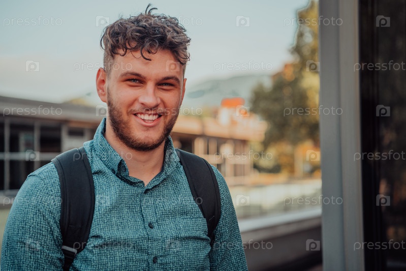 Портрет современного мужчины, излучающего уверенность и стиль, на фоне природы, демонстрирующий его харизму и модную манеру поведения