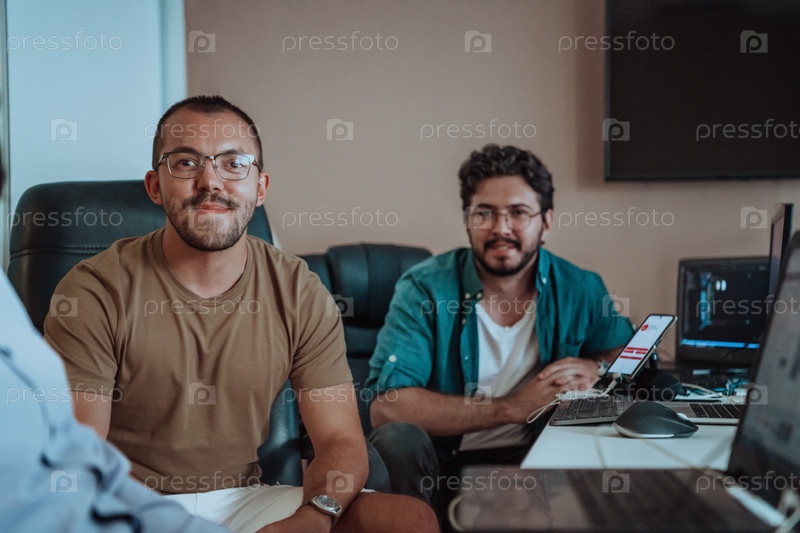 Программисты, погруженные в тесное сотрудничество, усердно трудятся вместе над решением сложных проблем и разработкой инновационных мобильных приложений с безупречной функциональностью