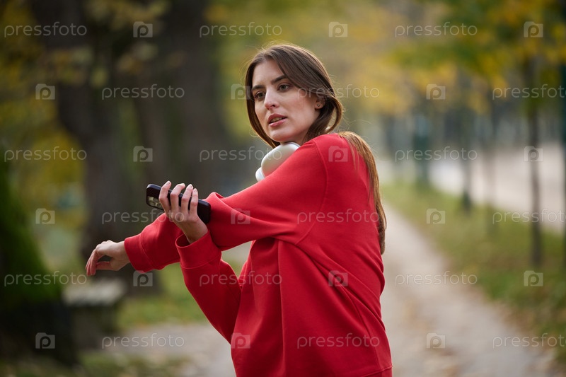 Спортивная молодая женщина делает вдох и расслабляется после пробежки и растяжки. Тренировка женщины и упражнения для тренировки на улице