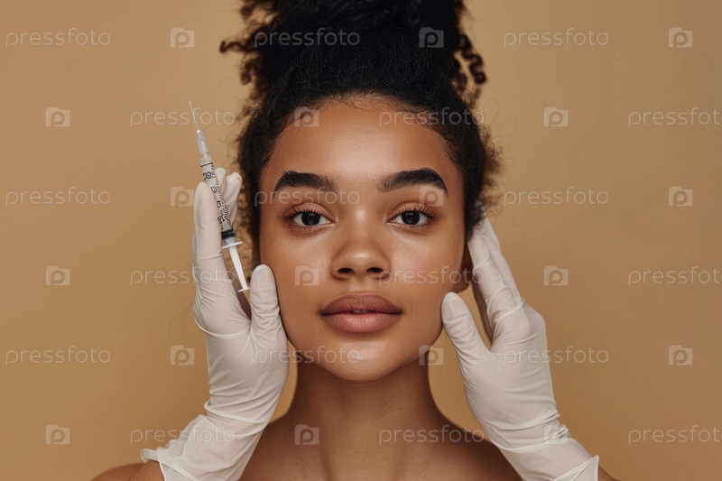 Человеку делают косметическую инъекцию в клинических условиях, руки в перчатках находятся на его лице
