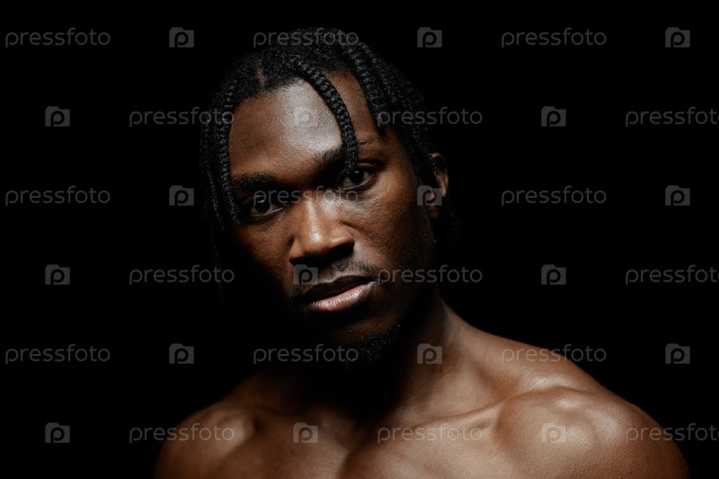 Портрет здорового чернокожего мужчины, смотрящего на камеру в контрастном свете