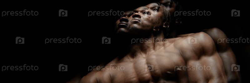 Header Image with с тройной экспозицией чернокожего без рубашки в контрастном свете в студии