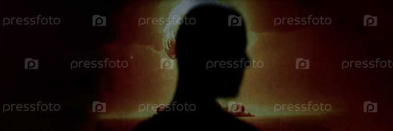 Header Image of Mans Head Силуэт головы человека против проекции ядерного взрыва в студии