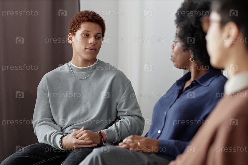 Подросток слушает терапевта на встрече группы поддержки