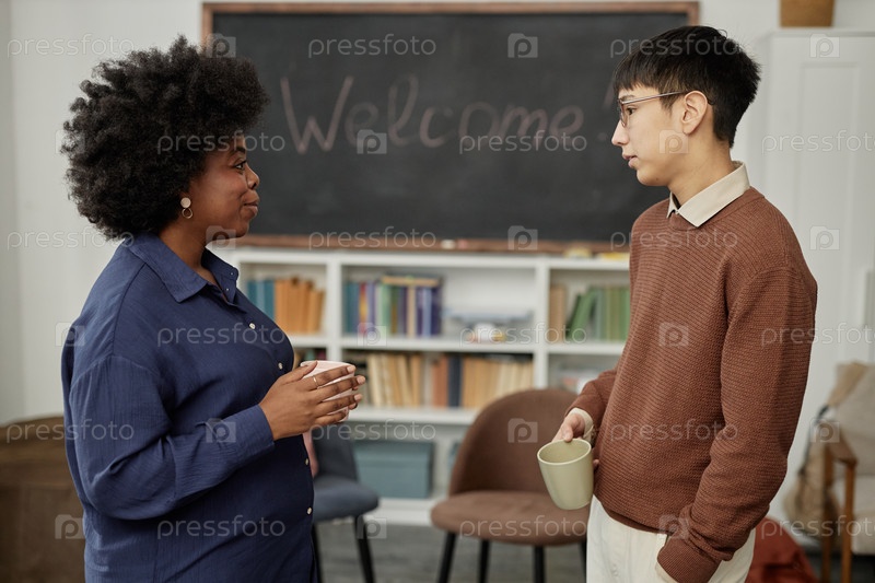Азиатский подросток разговаривает с учителем или консультантом