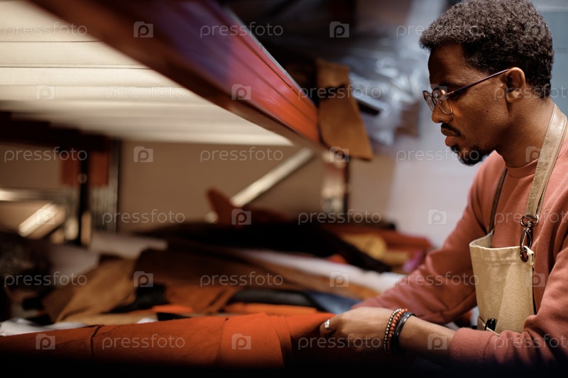 Афроамериканский ремесленник, работающий в кожевенной мастерской
