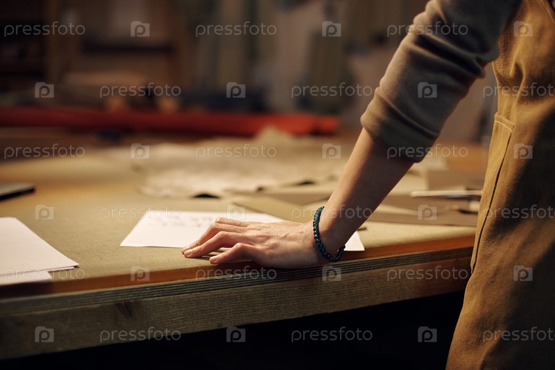 Отдыхающая рука на деревянном столе в уютной рабочей зоне